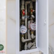 При ремонте заменили стояк . Объединили туалет с ванной комнатой. Установили инсталляцию.