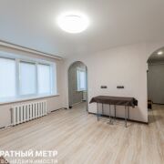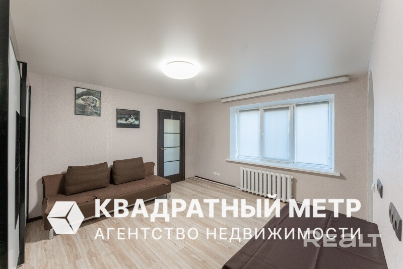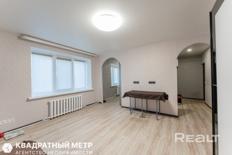 Удобная рациональная планировка с просторной гостиной. Окна( стеклопакеты ПВХ) выходят на зеленую территорию, на полу уложен ламинат. Во вместительной ванной комнате есть душевая кабина, стиральная машинка, на полу плитка.