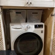 Функциональная планировка: окна на две стороны, выделена постирочная зона и организовано удобное встроенное рабочее место.