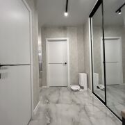Продается со всей мебелью и техникой как на фото. 16 видовой этаж в топовом доме Hyde Park, окна на здание старого аэропорта, полностью обставлена новой мебелью и техникой (3 TV Lg75",43",43"-2025г, робот Dreame, кофе маш DeLonghi, варочная и духовой Bosch, посудомоечная и микр-я печь, стирально-сушильный шкаф Lg, кондиционер) - все новое и на гарантии. Инсталяция Grohe, гигиенический душ, уст-н видео домофон с Face ID и т.д. Перепланировка узаконена. Агентствам НЕ ЗВОНИТЬ!!! Продает собственник