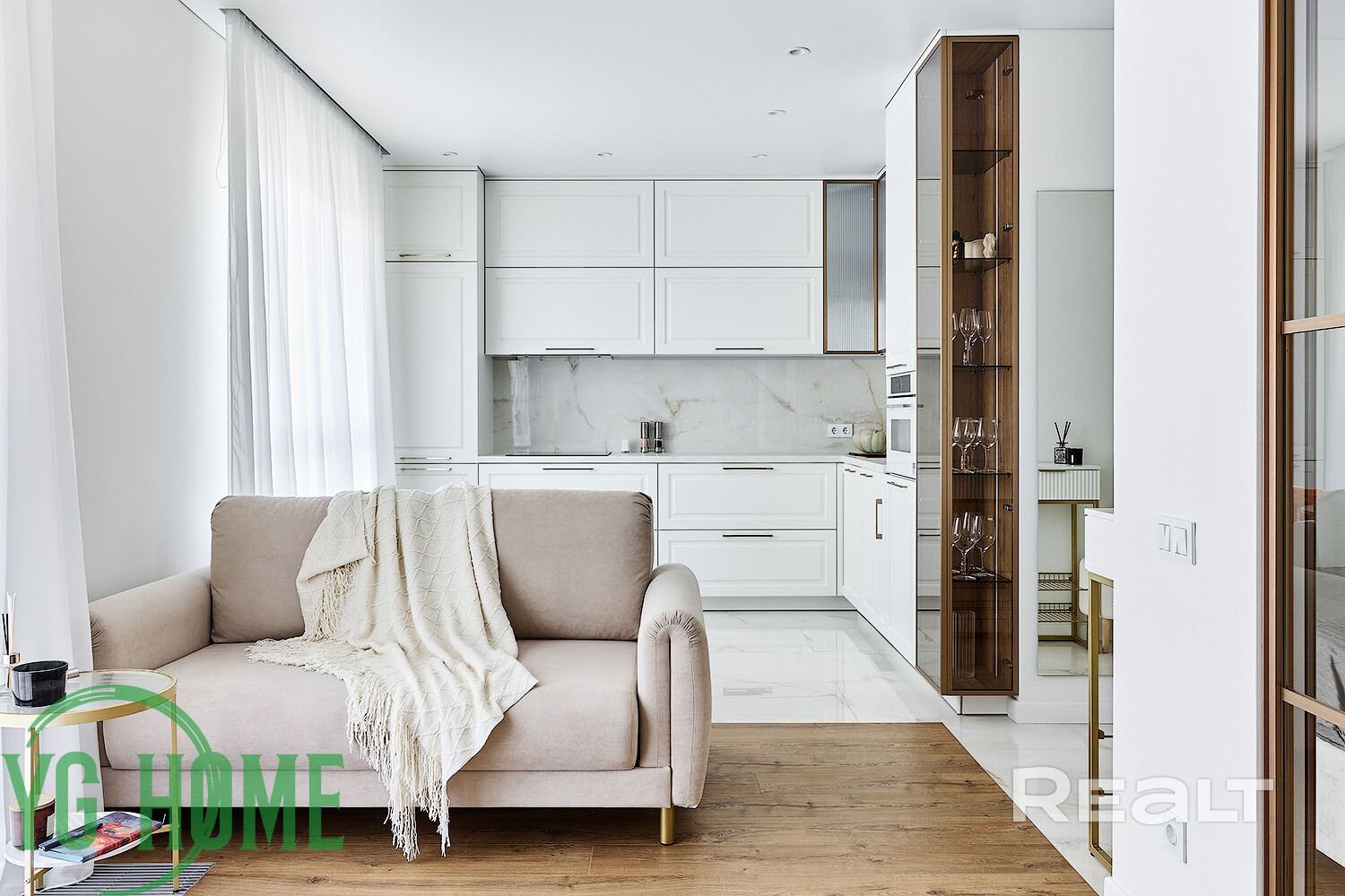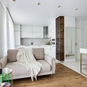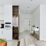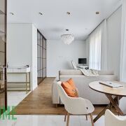 В квартире выполнен качественный и стильный ремонт, все продумано до мелочей. Надежная бытовая техника, различные сценарии подсветки, много мест для хранения вещей. Грамотно сделана планировка квартиры с изолированным спальным местом, зоной кухни и гостиной зоной.