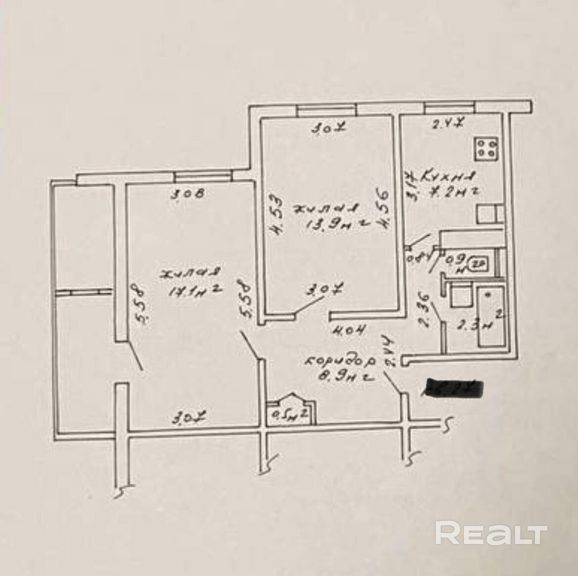 - Площадь кухни