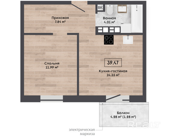 - Формат: евродвушка - просторная кухня-гостиная + комната;