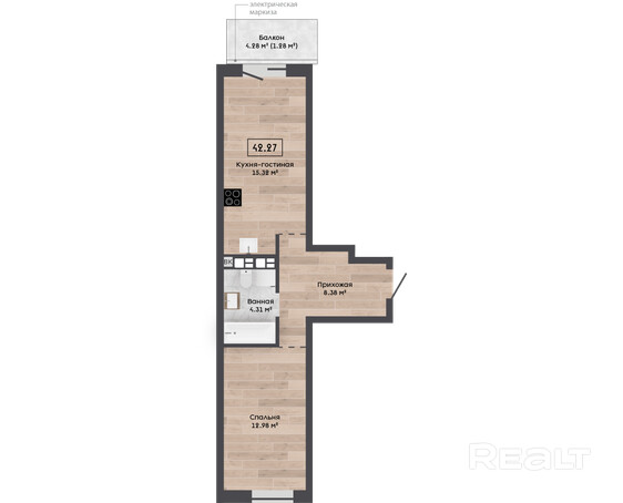 • Формат: евродвушка - просторная кухня-гостиная + комната;