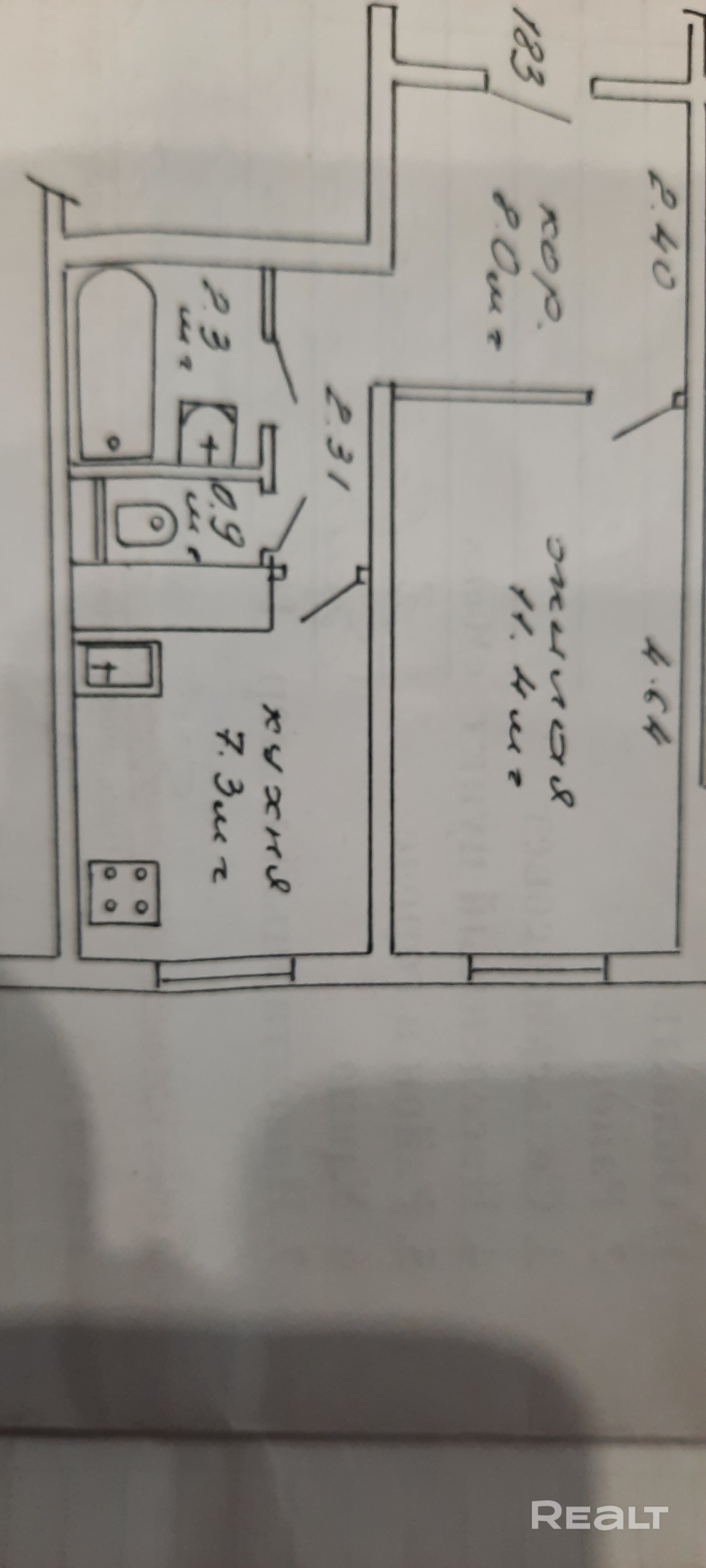 - Площадь кухни