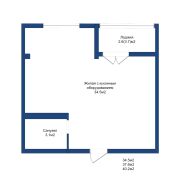 Общая площадь по СНБ – 40.2 кв.м, которая включает свободную планировку.