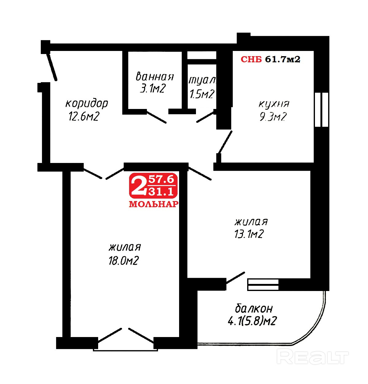 57.6 м²