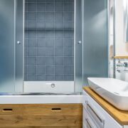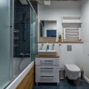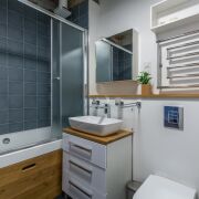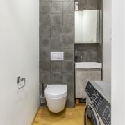 Два санузла, облицованы плиткой, сантехника испанского производителя. Кладовую комнату 3,2 м2 можно оборудовать под гардеробную.