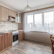 Кухня: площадью 9.3 м2. Вся кухонная мебель и техника останется новому владельцу. Пространство позволяет организовать рабочее пространство и обеденную группу.