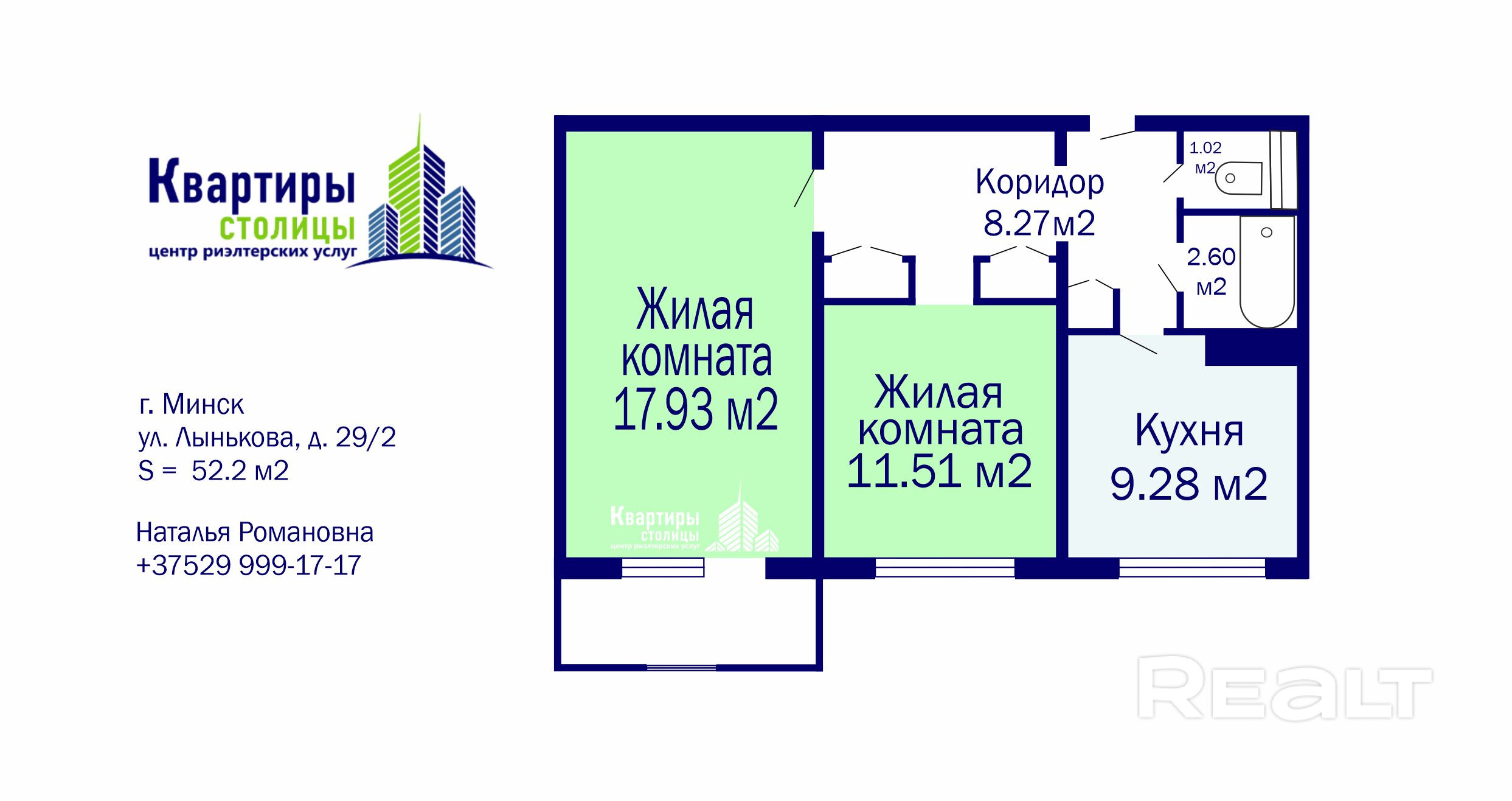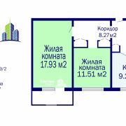 Метраж квартиры: общ. 52.2 м2, жил. 29.4 м2, кухня 9.3 м2