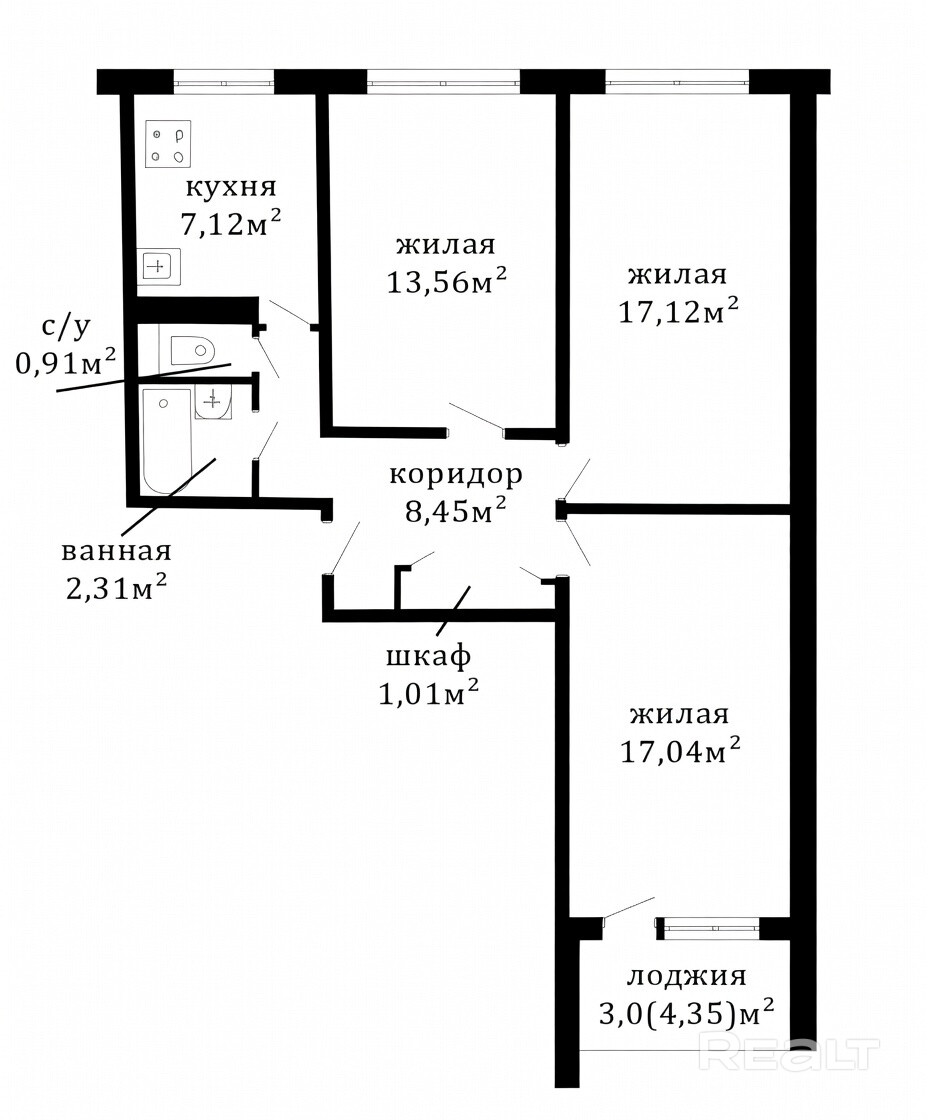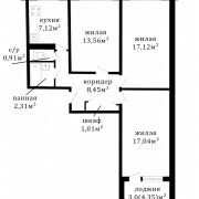 Функциональность: Три просторные изолированные комнаты и раздельный санузел. Удобная планировка для большой семьи.