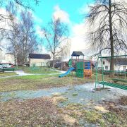 -Возле подъезда огромная асфальтированная парковка. Подъехать можно любым транспортом прямо к подъезду. Двор обустроен детской площадкой и дорожками, тихий, зелёный и спокойный, т.к. за ним начинается частный сектор с одноуровневыми домами.