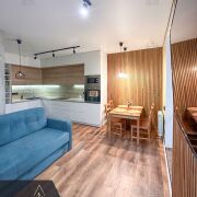 Функциональная планировка: Просторная гостиная, объединенная с кухней, и уютная отдельная спальня.