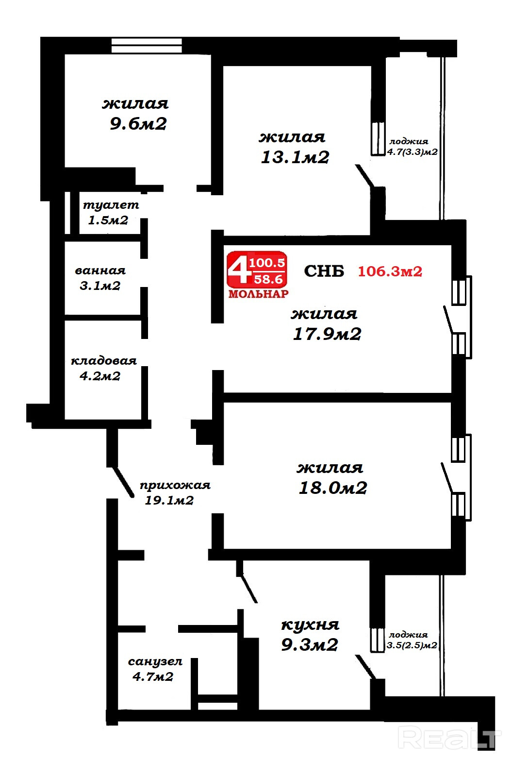 Большая 4-х комнатная квартира с шикарной планировкой. Площадь по СНБ 106.3м2 Высокие потолки 2,66 м. Две лоджии, два санузла. Отличный ремонт: встроенная кухня, встроенные шкафы, гардеробная, большие комнаты, современная плитка. Развитая инфраструктура, отличное транспортное сообщение, рядом школы, детские сады, музыкальная школа, ДК МАЗ, бассейн. Торг.