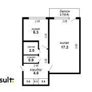 Просторная комната 17.2 кв.м с балконом (остеклен).