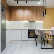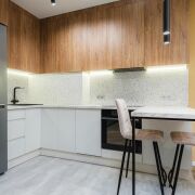 - Кухонная зона полностью обустроена. Установлена встроенная кухня с техникой: варочная поверхность Gorenje, духовой шкаф Gorenje, посудомойка Electrolux, вытяжка Zorg, холодильник Beko. Также остается стиральная машина LG. Вся техника в отличном состоянии и находится на гарантии.