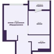- Общая площадь по СНБ 36 м2, удачная планировка: просторная жилая комната 20,4 м2 с кухонной зоной, отдельная спальня 8,9 м2, совмещённый санузел 4,7 м2 и удобный коридор с вместительной системой хранения. Есть застеклённая лоджия 2,9 м2, которую можно обустроить под кабинет или место отдыха.