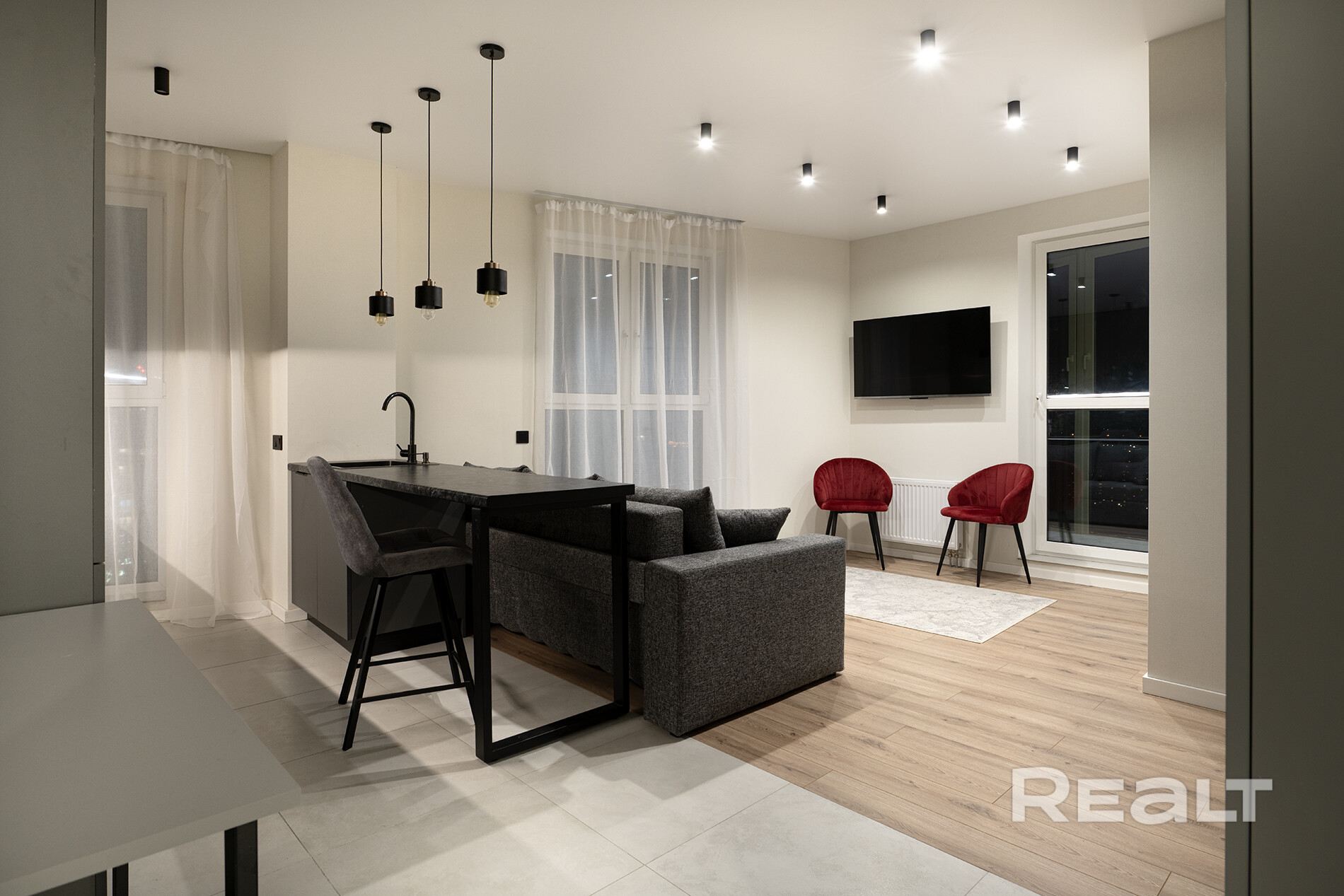 · Продуманное пространство. Современная свободная планировка объединяет кухню и гостиную в сердце дома с выходом на лоджию, есть отдельная спальня с панорамными окнами.