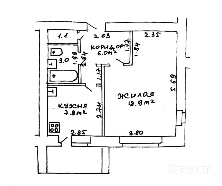 В центре города Столбцы продается однокомнатная квартира общей площадью 36,8 м2.