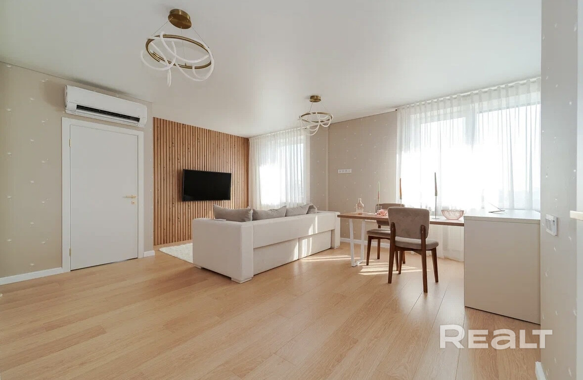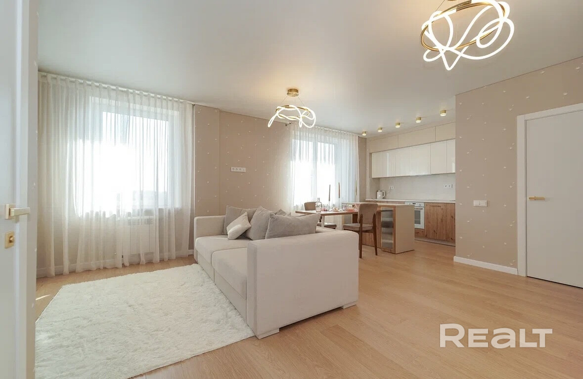 22 этаж , из спальни вид на Минское море и проспект. Никто не жил, новый ремонт . Дизайн проект. Есть комната для хоз нужд , отдельная спальня с большой гардеробной и местом для чтения, выход на лоджию, кондиционеры в каждой комнате, обои Armani 2024 , новая мебель, шторы блэк аут , встроенная кухня, стиральная машина , посудомоечная , испанская плитка и сантехника, бойлер, просторные раздельные санузлы. В комплекте все от посуды до тапочек. Лояльная цена . Прекрасное вложение , в этом ЖК только удорожание , но не наоборот. Потрясающее обслуживание , Клуб жильцов , йога , компьютерный зал и детская комната . Все к услугам жильцов дома . Роскошная территория , идеальная чистота, выход из дома на проспект. Респектабельные соседи !