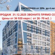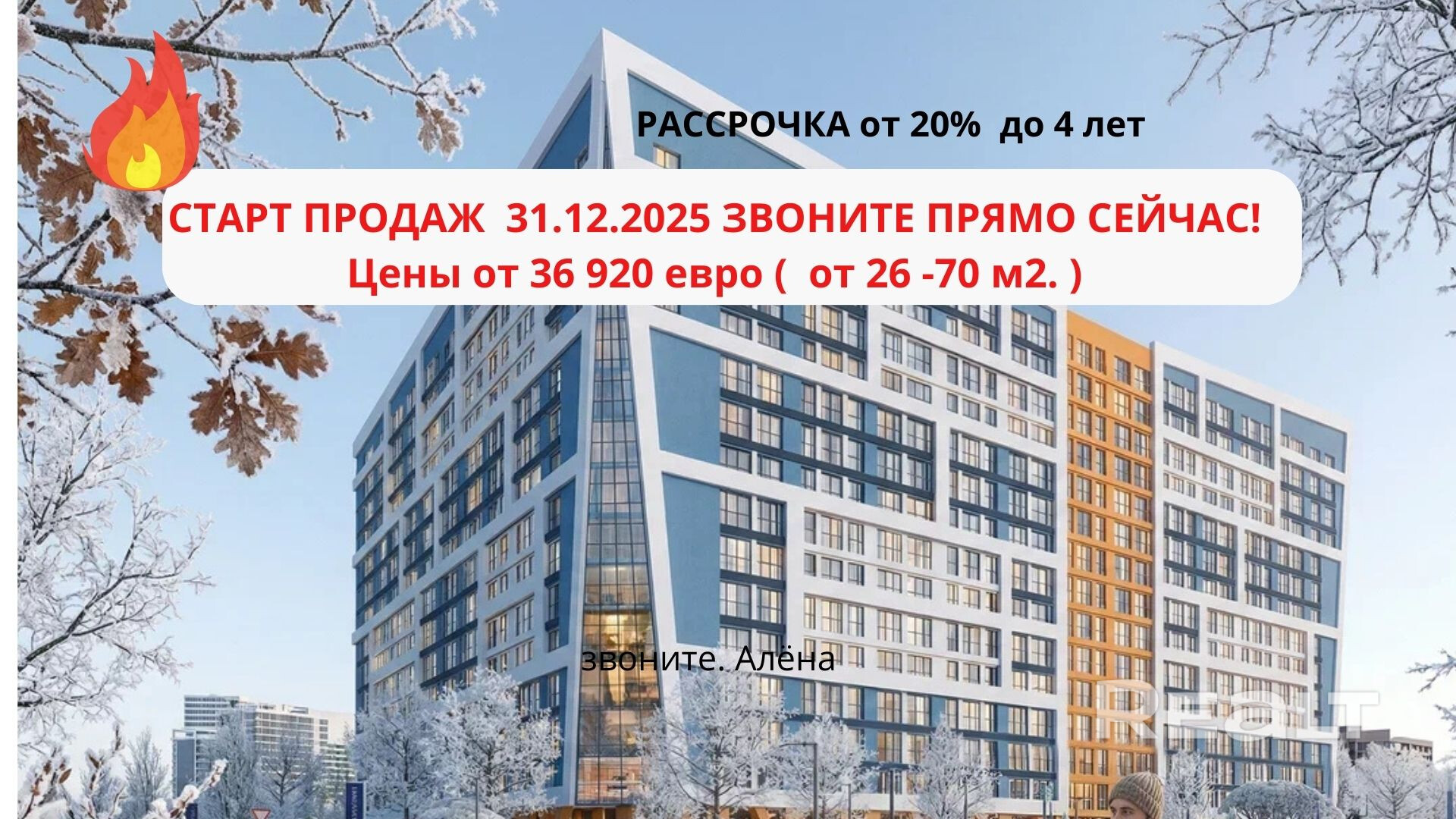 ВЫГОДНАЯ РАССРОЧКА от 20  % первый взнос. ОГРОМНЫЙ выбор ! Апартаменты напрямую от застройщика!от 26-70 м -разные этажи!