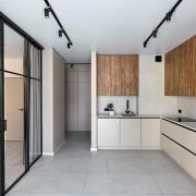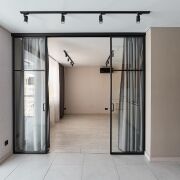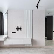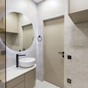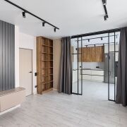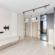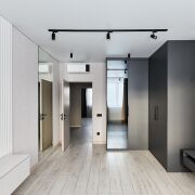 - Освещение организовано с помощью трековых систем и локальных светильников, что позволяет равномерно распределять свет в помещениях.