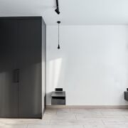 - Спальня изолирована и оборудована шкафом, прикроватными тумбами и системами хранения. Планировка позволяет рационально разместить мебель без перегруженности пространства.