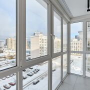 - Окна выходят на обе стороны дома, обеспечивая естественное освещение в течение дня. Лоджия застеклена и выполнена с панорамными окнами.