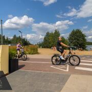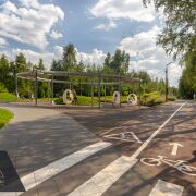 Приватный двор без автомобилей украшает ландшафтный дизайн, есть развивающая детская игровая зона, зона барбекю и закрытая велопарковка. Рядом находится плоскостная парковка с возможностью установки зарядок для электромобилей, а в шаговой доступности — многоуровневый паркинг.