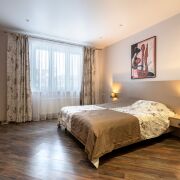 Гостиная с выходом на просторную лоджию идеально подойдет для уютных встреч и отдыха, а дизайнерский камин добавит уюта и тепла в холодные вечера. Большая ванная комната для двоих станет настоящим оазисом для расслабления.