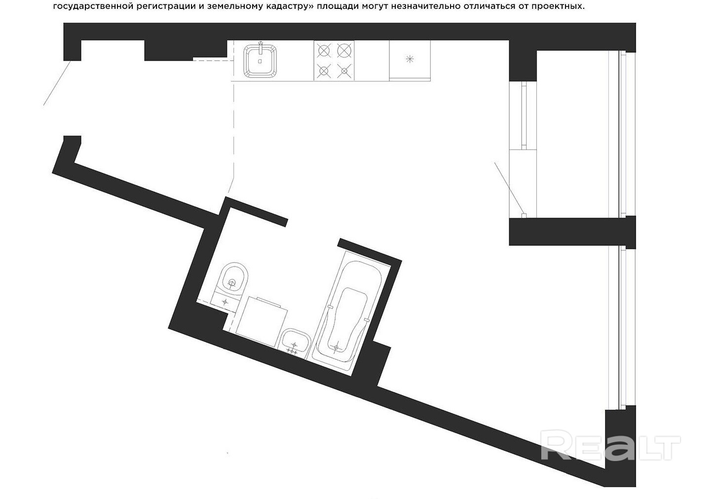 • с возможностью устройства 1ой комнаты (29,91−38,14 кв.м.),