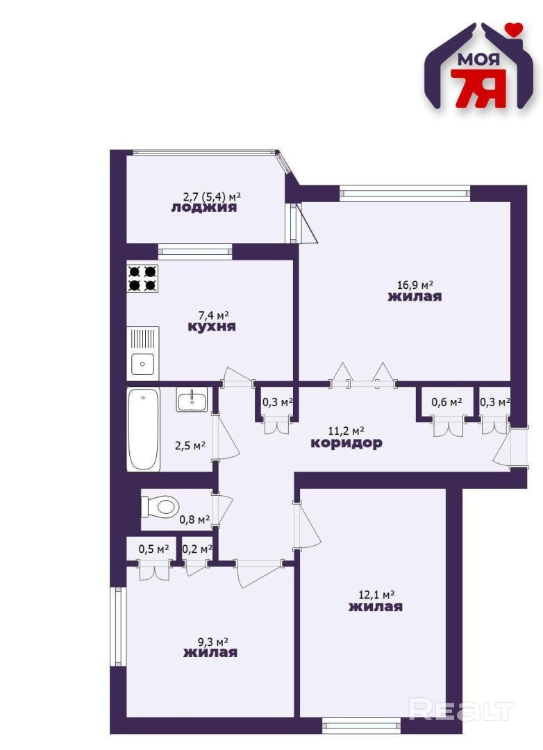 -Общая площадь — 62,2 кв.м., жилая — 37,9 кв.м., а кухня площадью 7,5 кв.м. отлично впишется в образ уютного семейного завтрака. Все три комнаты — изолированные, что делает квартиру идеальной как для семьи с детьми, так и для тех, кто ценит личное пространство.