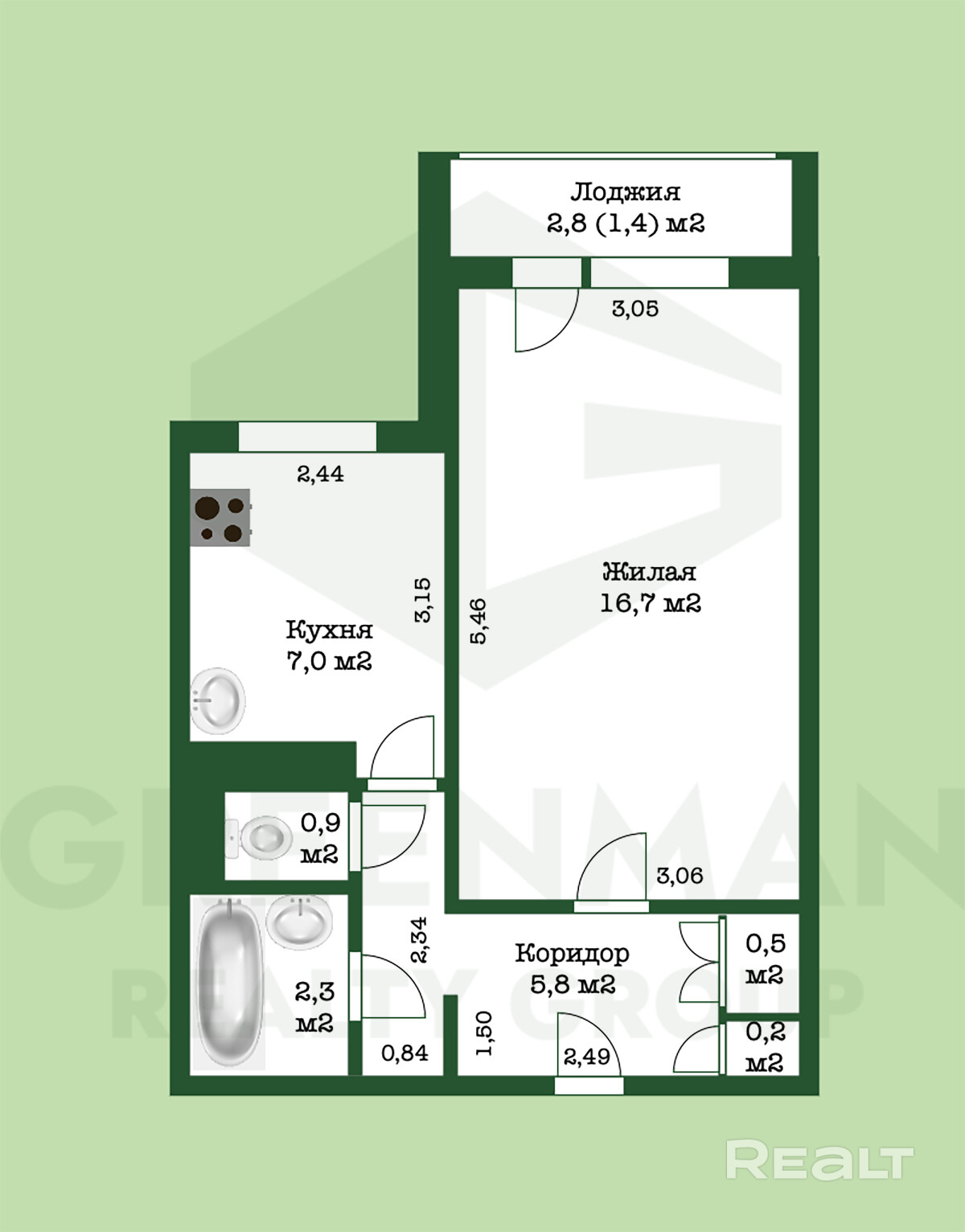 16.7 м²