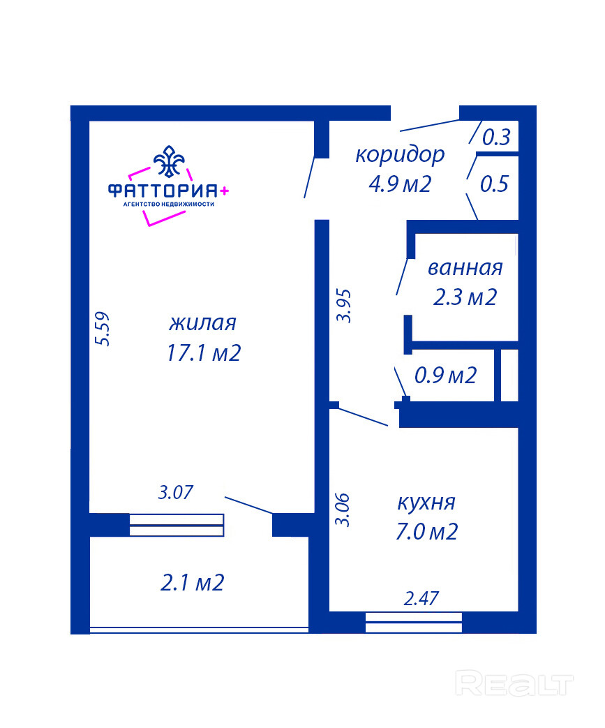 17.1 м²