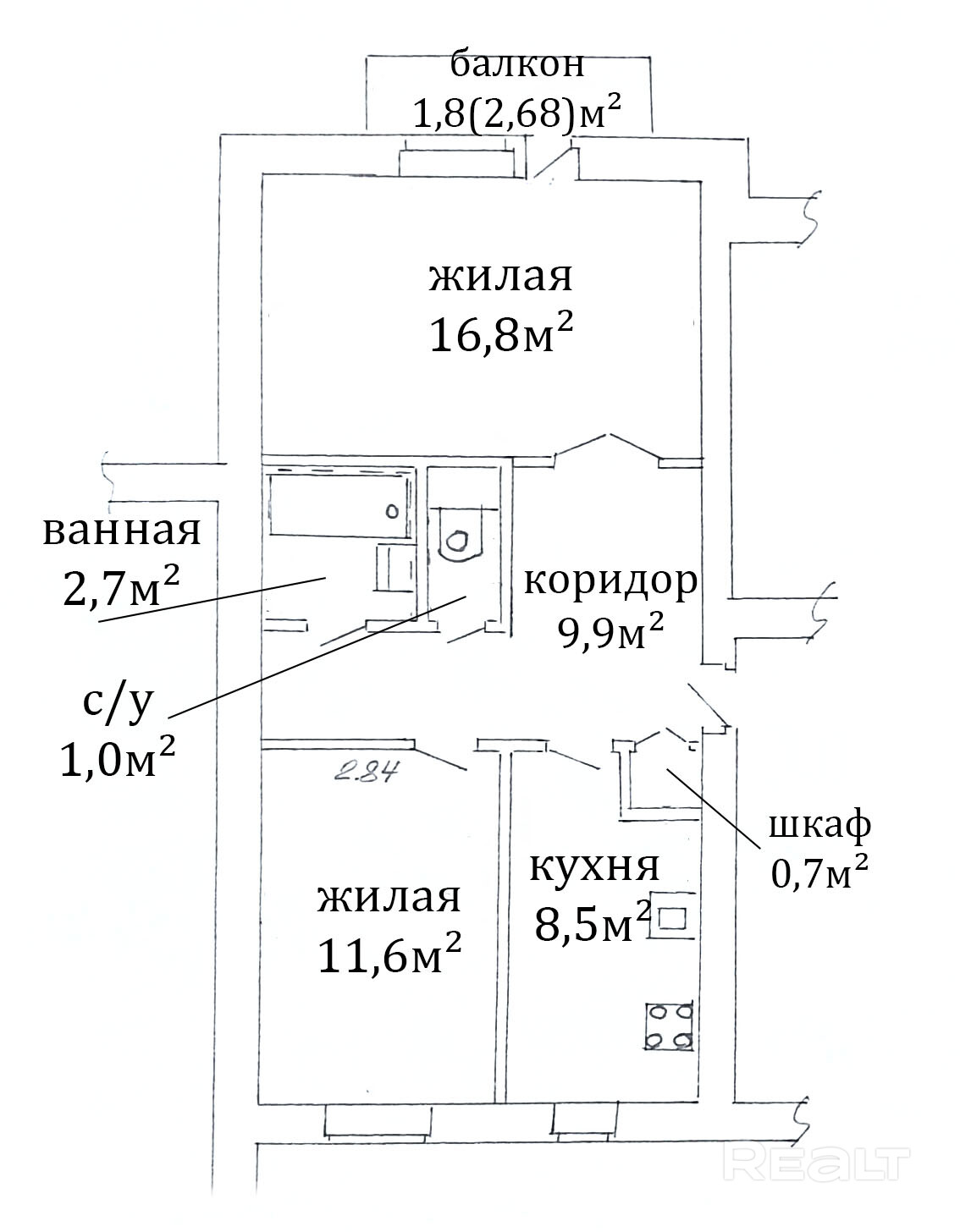 Улучшенная планировка: Общая площадь 53(СНБ) кв.м. Две раздельные жилые комнаты (28.4 кв.м.) и просторная кухня — 8.5 кв.м., где комфортно разместится вся семья.