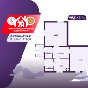 - Общая площадь квартиры составляет 48,1 кв.м, жилая площадь 32,1 кв.м, площадь кухни 5,4 кв.м.