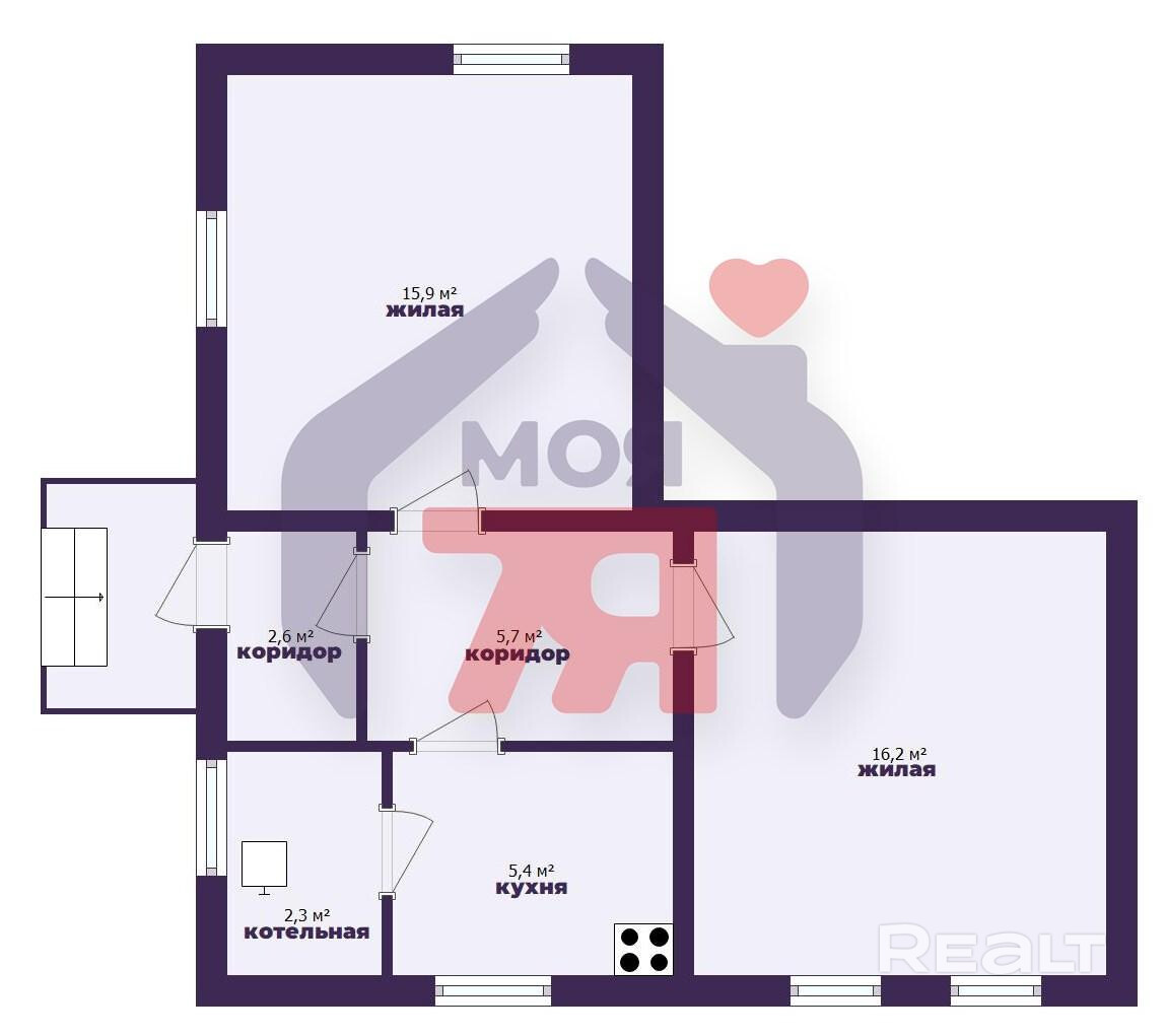 ❤️ Двухкомнатная квартира со всеми коммуникациями в блокированном доме в Молодечно. Общая площадь 48,1 кв.м, Кирпичный дом 1956 года, удовлетворительный ремонт, окна ПВХ, центральное водоснабжение, местная канализация, твердотопливное отопление. Рядом остановка транспорта и вокзал, к квартире относится участок 4 сотки.