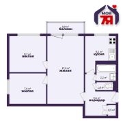 - 3 жилые комнаты: 1 проходная 17,2 кв.м. и 2 изолированные 7,6 и 9,2 кв.м.