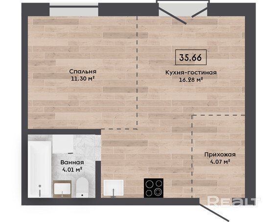 - Формат: евродвушка - просторная кухня-гостиная + комната;