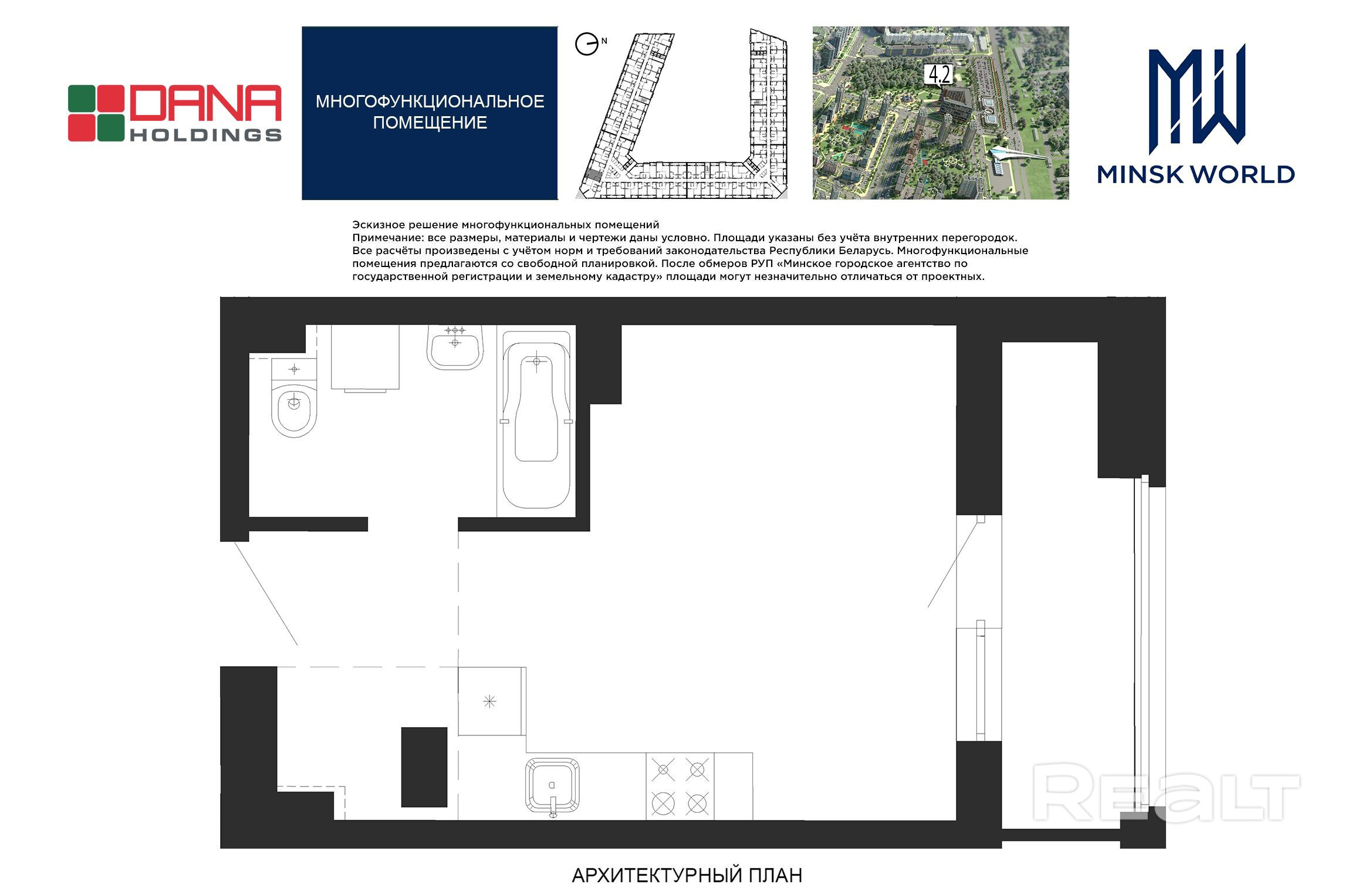 Высота от пола до потолка — 2,67 м. Большинство бизнес-апартаментов имеют панорамные окна, в каждом — лоджии.