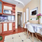 Квартира в аккуратном состоянии; окна ПВХ выходят на две стороны дома, металлические входные двери. Встроенные шкафы и кухня в хорошем состоянии.