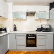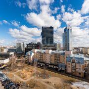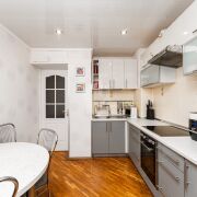 Просторная кухня 8.6 кв.м. с выходом на лоджию и обзором на ТРЦ Galleria Minsk.Установлен новый кондиционер General.