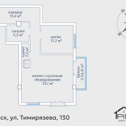 ► Жилая — 45,3 кв.м (включая просторную гостиную-кухню 33,1 кв.м и отдельную спальню 12,2 кв.м).