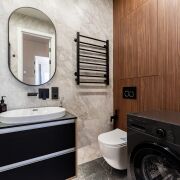 * Дизайнерский проект: Интерьер выполнен в стиле «современная классика», который подчеркивает величие 3-метровых потолков. Использованы премиальные материалы отделки, продуманные сценарии освещения и эксклюзивные элементы декора.