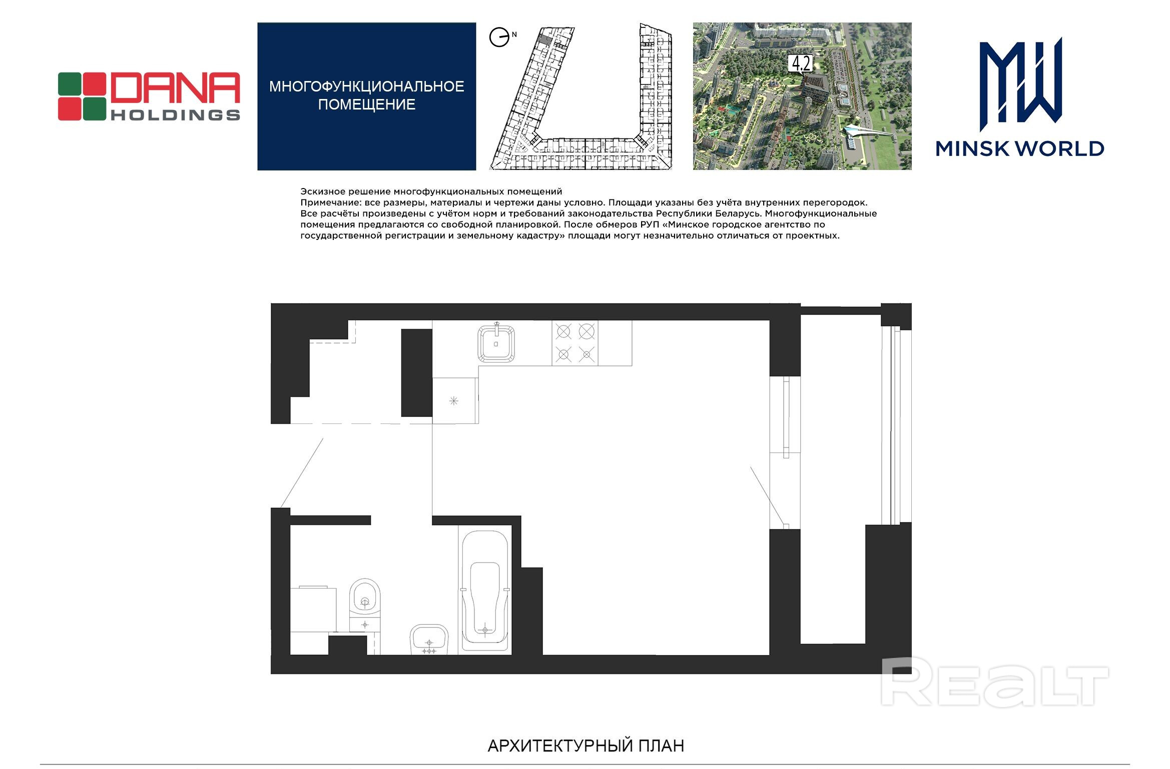 Высота от пола до потолка — 2,67 м. Большинство бизнес-апартаментов имеют панорамные окна, в каждом — лоджии.