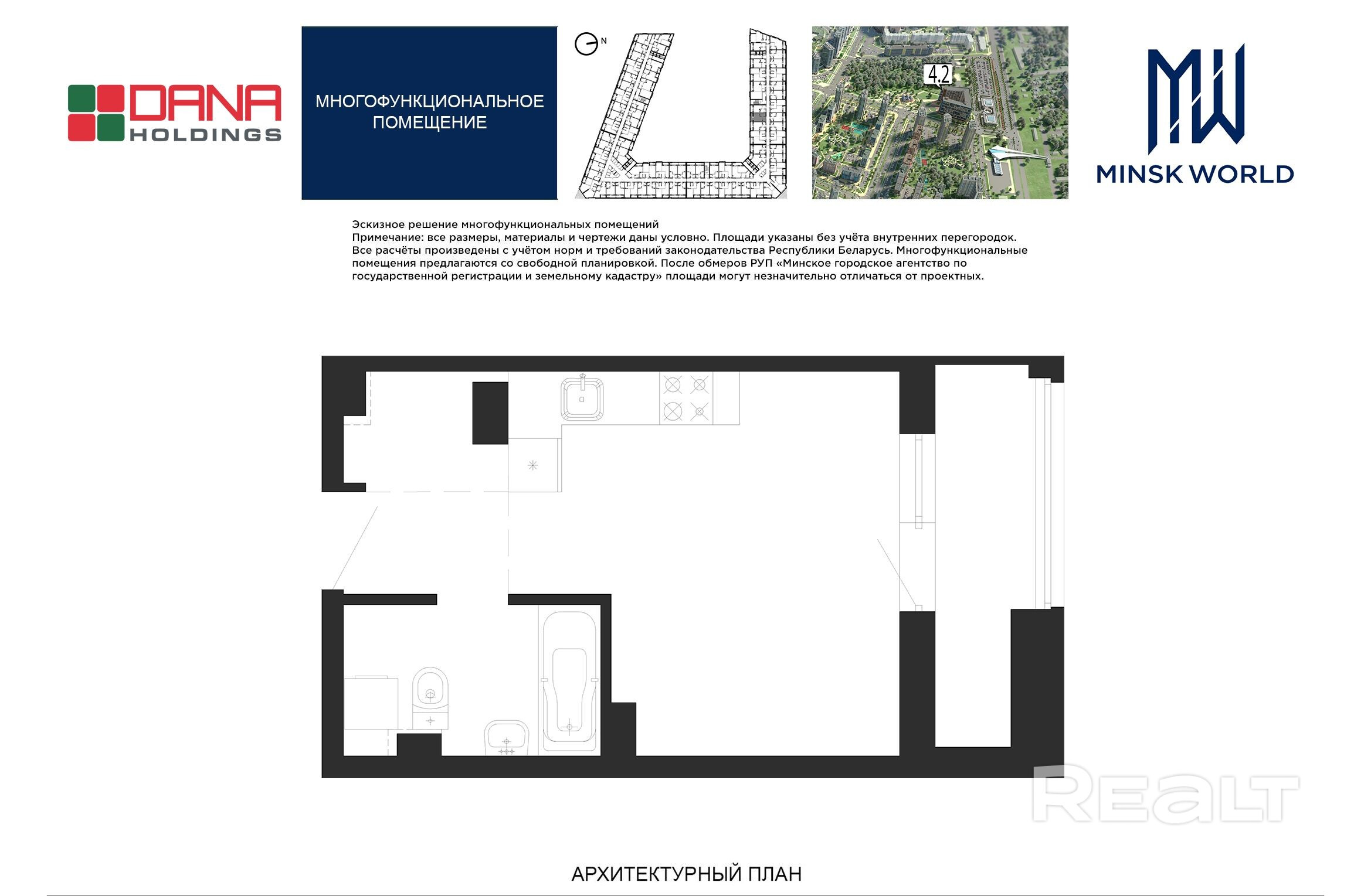 Высота от пола до потолка — 2,67 м. Большинство бизнес-апартаментов имеют панорамные окна, в каждом — лоджии.