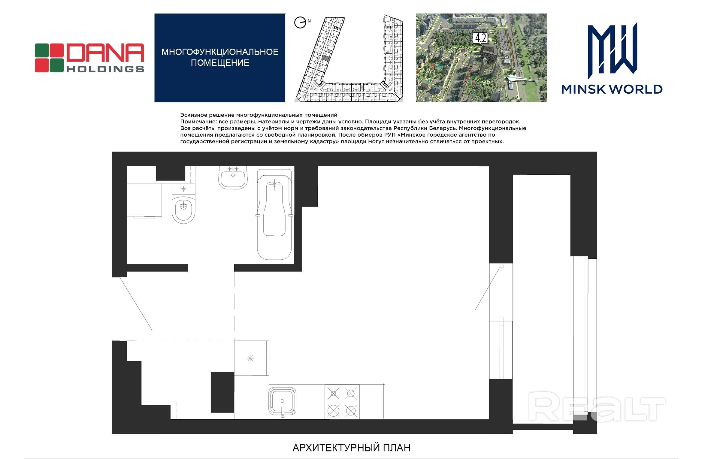 Высота от пола до потолка — 2,67 м. Большинство бизнес-апартаментов имеют панорамные окна, в каждом — лоджии.