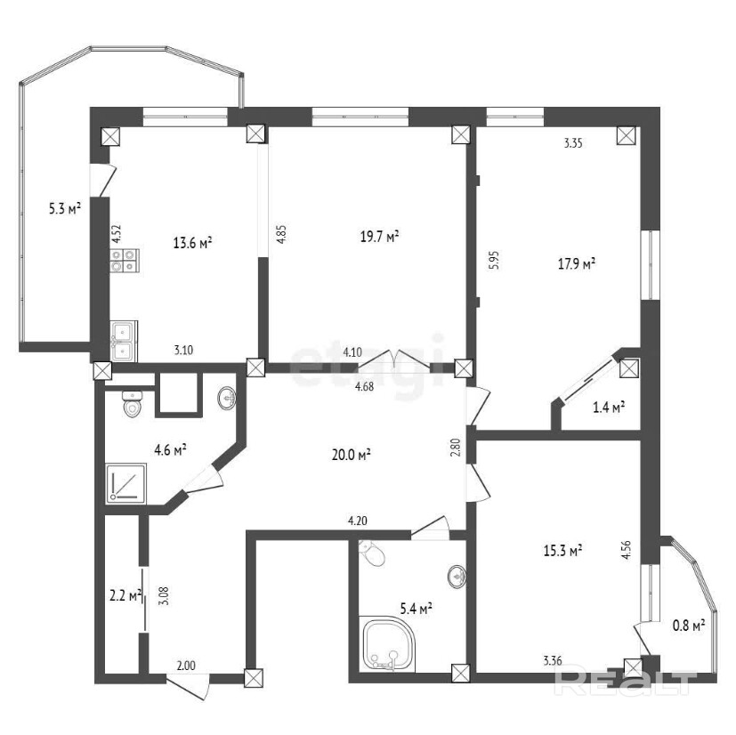 - две отдельные просторные спальни: 17.9 м2 и 15.3 м2 и своей