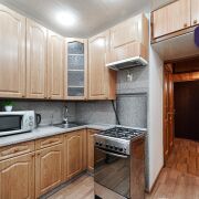 -Внутри сделан свежий качественный ремонт: светлые стены, встроенные шкафы‑купе. Частично остаётся мебель и техника, включая кухонный гарнитур с газовой плитой.