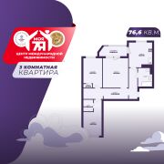 3-комнатная квартира 76,6 кв.м., кирпичный дом
